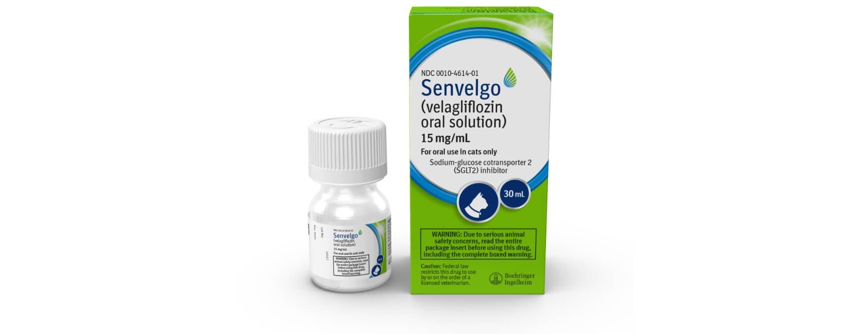 - SENVELGO® (velagliflozin oral solution) [Freedom of Information Summary; NADA 141-568]. St. Joseph, MO: Boehringer Ingelheim Vetmedica, Inc.; 2023.